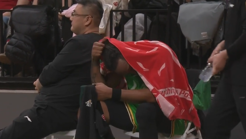 第四节最后1分41秒,随着韦瑟斯庞2罚打进,青岛领先来到83-66,杨鸣终于撤下了威尔斯换上全华班投子认负,镜头此时给到赵继伟,继伟的表情十分凝重;