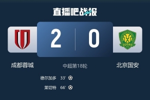 体育资讯7月26日讯 中超第18轮,北京国安0-2不敌成都蓉城。